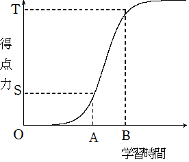 上のグラフは、ある項目の学習をはじめてからの学習時間と、その項目の得点力との関連を表わしたものである。学習を始めてからしばらくの間は得点力が全く上昇しないが、ある程度のところから上昇を始める。このAに達した時、 多くの生徒はわかったという感覚が強く出てくる時で、このときに学習をやめてしまうことが多い。しかし、このときの得点力はさほど高くないのである。