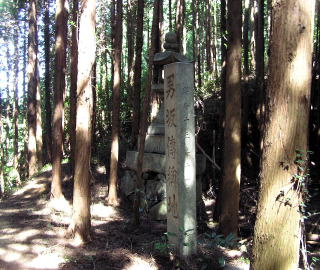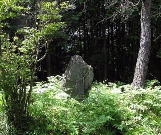 「神代の昔 佐野命 熊野伊勢を経て高見山を踏破この峻岩を天皇自らよじ登り四方展望 兄猾(えうかし)の根拠地、宇陀を眼下に見下し又遠く男坂女坂墨坂方面の長髓彦等の敵情視察なし第一回の軍議評定せし処なり。」
